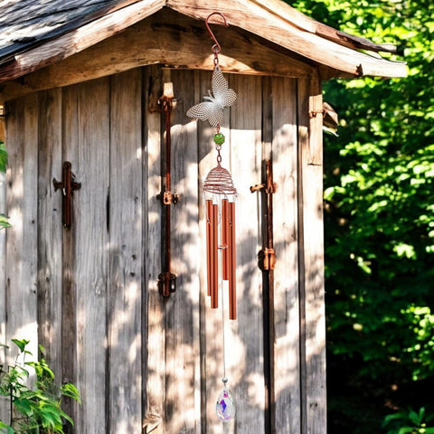 Elegant Sun Design Radiates warmth and energy, finished in a luxurious rose gold. Intricate Butterfly Motif Adds charm and grace to any space. Beautiful Hummingbird Design Symbolizes joy, lightness, and energy. Mystical Crescent Moon Celestial charm in a stunning rose gold tone. Soothing & Harmonious Tones Precision-tuned metal tubes deliver relaxing, melodic sounds. 58cm Compact Size Suitable for balconies, gardens, patios, or indoor use. Weatherproof & Durable Rust-resistant metal construction for year-round beauty. Thoughtful Gift Perfect for birthdays, memorials, or garden decor lovers.